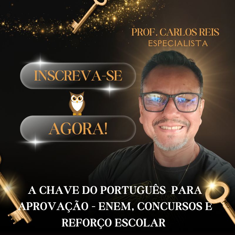 PREPARATÓRIO: Nosso preparatório tem como carro-chefe a Língua Portuguesa, com o professor Carlos Reis, um nome de peso na educação: ✅ Já passou 03 Concursos ✅ 28 anos de experiência em sala de aula ✅ Atuando nas redes Estadual e Municipal de ensino. Com ele, você aprende de verdade. E o melhor: ao se matricular no Curso de Português, você ganha acesso TOTAL a todas as disciplinas Escolares: Português, Geografia, Biologia, Matemática, Física, Química, História, Ed. Física, Filosofia, Artes, Sociologia, Geografia, Téc. de Redação e Matemática p/ ENEM. Tudo 100% online, para você estudar no seu tempo, no seu ritmo e no conforto da sua casa. VAGAS LIMITADAS!
